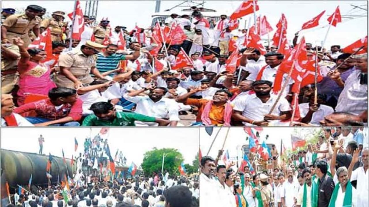 Cauvery issue - 845 people arrested in Villupuram for blocking train