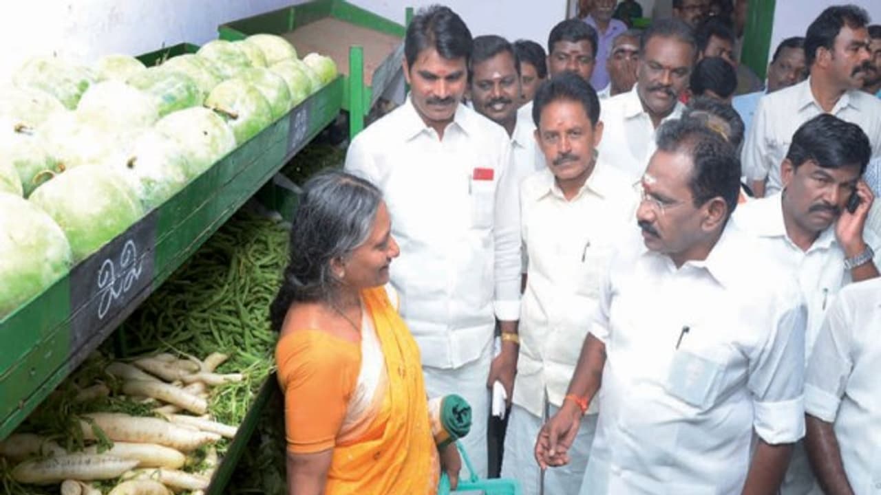 “தமிழ்நாட்டில் பண்ணைப் பசுமைக் காய்கறிக் கடைகள் முன்னாள் முதலமைச்சர் ஜெயலலிதாவால் தொடங்கி வைக்கப்பட்டது. தமிழ்நாடு முழுவதும் 72 கடைகளும், நகரும் இரண்டு கடைகளும் இயங்கி வருகின்றன. 26 ஆயிரத்து 500 டன் காய்கறிகள் ரூ.75 கோடியே 32 இலட்சத்துக்கு விற்பனை செய்யப்பட்டுள்ளது.