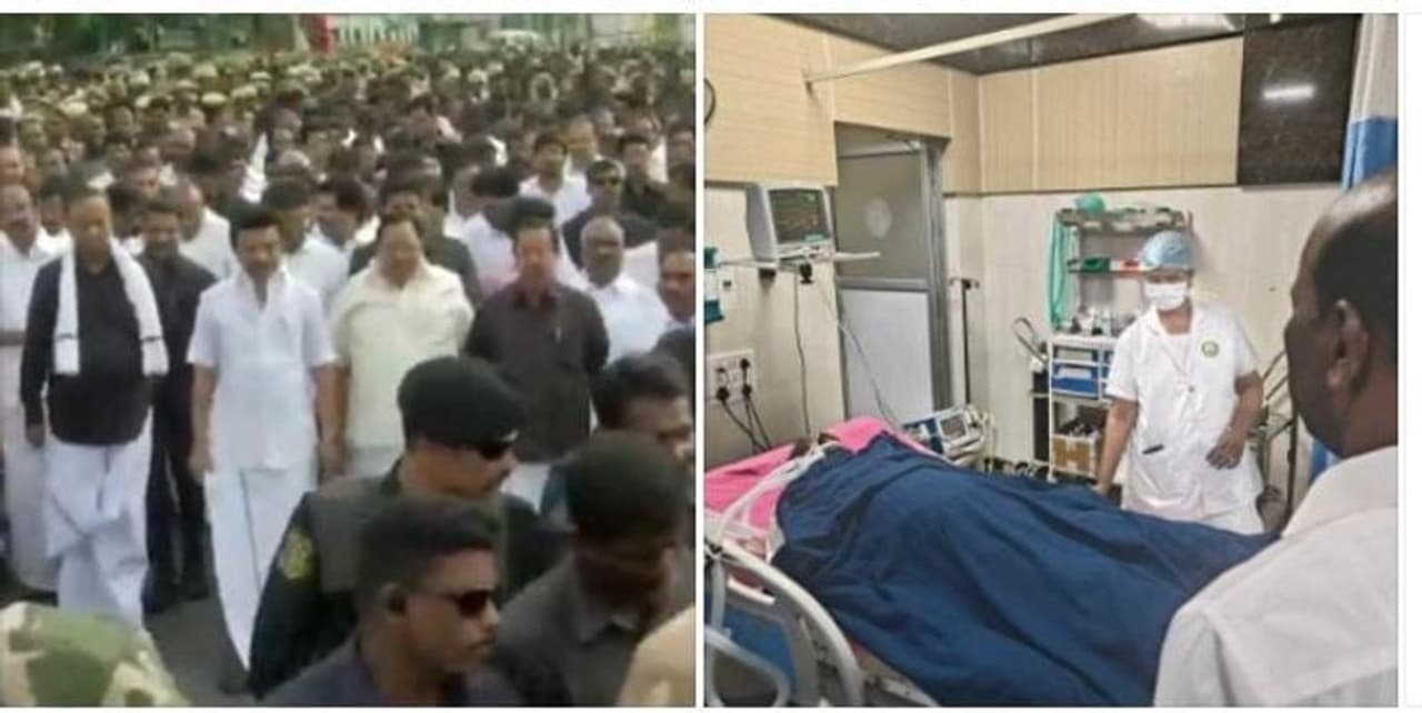 இந்த பேரணியில் கலந்து கொண்ட சென்னை தெற்கு மாவட்டத்தைச் சேர்ந்த திமுகவின் கழகத் தலைமை செயற்குழு உறுப்பினரும், 146வது வார்டு மாமன்ற உறுப்பினருமான ஆலப்பாக்கம் சண்முகத்திற்கு திடீரென உடல்நிலை பாதிப்பு ஏற்பட்டுள்ளது. இதனையடுத்து அவசர அவசராமக மருத்துமனைக்கு கொண்டு செல்லப்பட்டார். அங்கு அவருக்கு தீவிர சிகிச்சை அளிக்கப்பட்டது. இருந்த போதும் திடீரென ஏற்பட்ட மாரடைப்பால் சிகிச்சை பலனின்றி உயிரிழந்தார். இந்த சம்பவம் திமுகவினர் இடையே அதிர்ச்சி ஏற்படுத்தியுள்ளது. இதனையடுத்து மருத்துவமனைக்கு சென்ற அமைச்சர் மா.சுப்பிரமணியன் மறைந்த மாநாகராட்சி உறுப்பினர் சண்முகம் உடலுக்கு அஞ்சலி செலுத்தினார்.