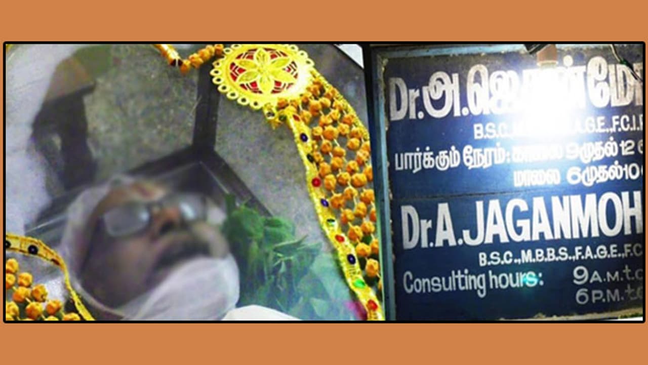 அவரது பெயர் டாக்டர் ஜெகன்மோகன் (76). ஏழைகளின் மருத்துவர் என்று அழைக்கப்பட்ட டாக்டர் ஜெகன்மோகன் நேற்று மாரடைப்பு காரணமாக உயிரிழந்தார்.1990 ஆம் ஆண்டு வரை தன்னிடம் மருத்துவம் பார்க்க வருபவர்களிடம், இவர் 2 ரூபாய் மட்டும் பெற்றுவந்த அவர், 1999 ஆம் ஆண்டு முதல் சிகிச்சைக் கட்டணத்தை ரூ.5 ஆக உயர்த்தினர்.