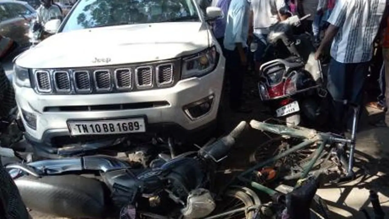 பிரபல டாக்டர் காமராஜின் மகன், அசுர வேகத்தில் காரை ஓட்டி சென்று, பைக்குகள் மீது மோதி, பிளாட் பாரத்தில் இருந்த 3 பேர் மீது மோதினார். இதில், அவர்கள் படுகாயமடைந்தனர்.