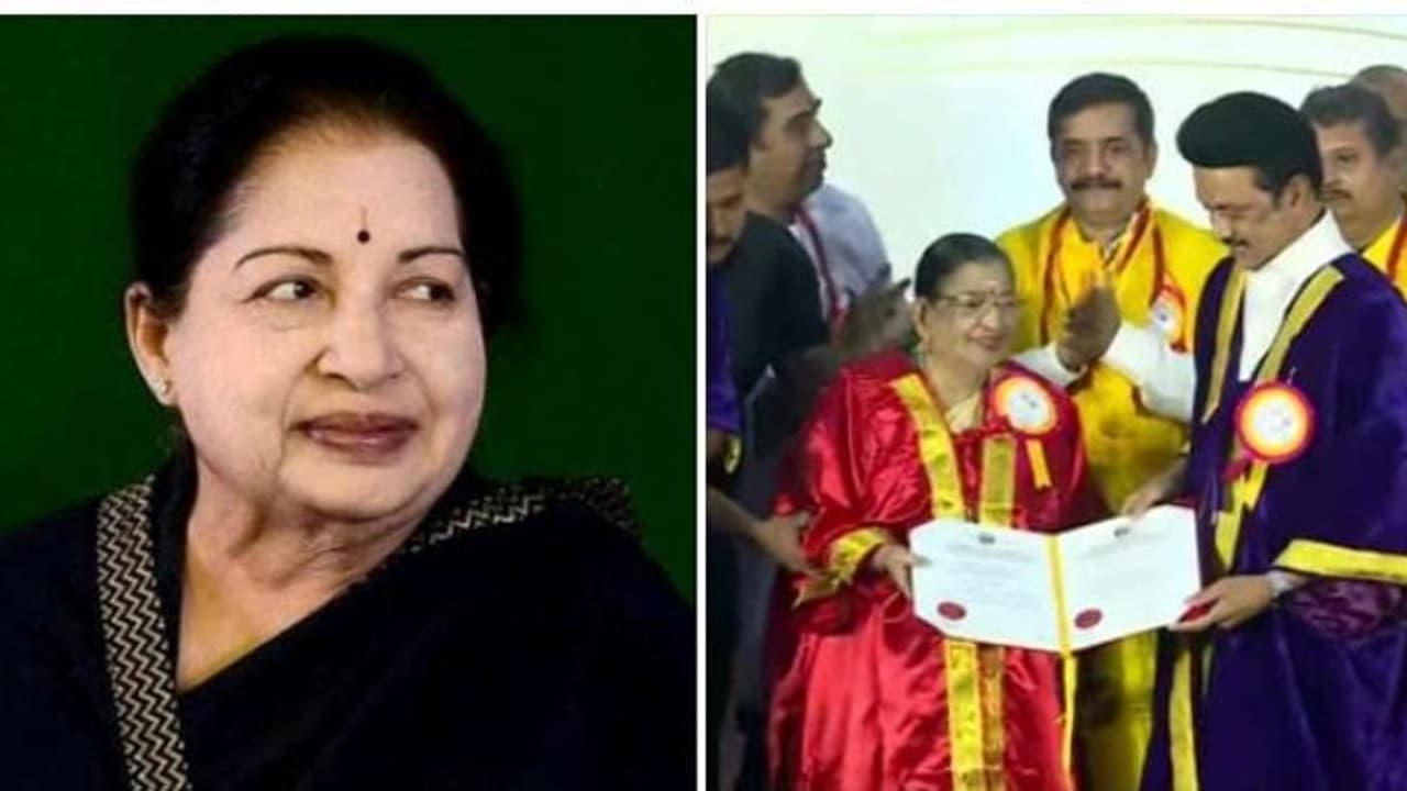 இதே போல இசை மேதை பி.எம்.சுந்தரத்திற்கும் முதலமைச்சர் ஸ்டாலின் கெளரவ டாக்டர் பட்டம் வழங்கினார். இதனை தொடர்ந்து மாணவர்களுக்கும் டாக்டர் பட்டம் வழங்கி பாராட்டினார். அப்போது விழாவில் பேசிய முதலமைச்சர் ஸ்டாலின், 2013 ஆம் ஆண்டு இசை மற்றும் கவின் பல்கலைக்கழக வேந்தர் முதல்வர் என்பதை கொண்டு வந்த முன்னாள் முதலமைச்சர் ஜெயலலிதாவை இன்றைக்கு உள்ள நிலையை உணர்ந்து மனதார பாராட்டு கிறேன்.