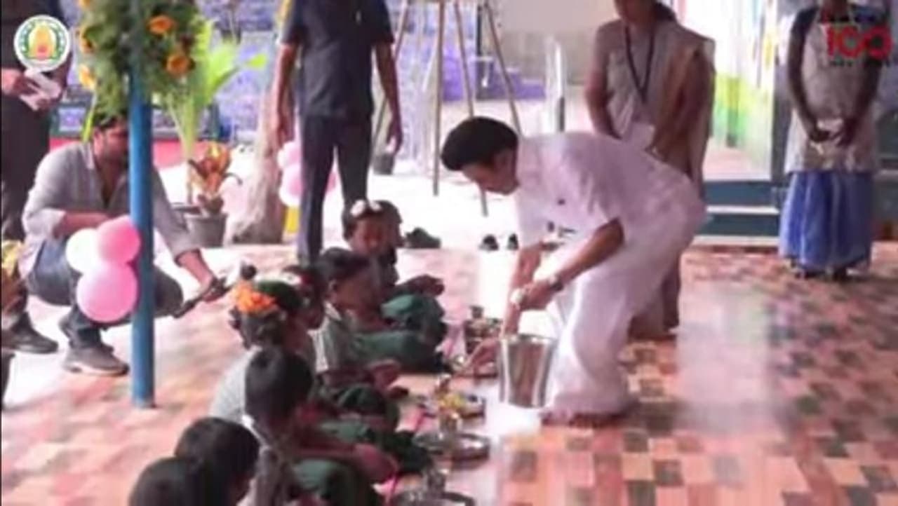 மாணவர்களோடு உணவு அருந்திய ஸ்டாலின்