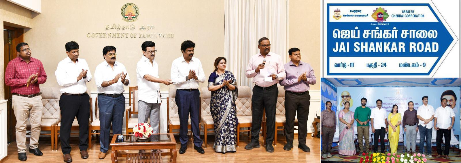 Jaishankar road in Nungambakkam : திரைப்பட நடிகர் ஜெய்சங்கர் அவர்கள் வசித்து வந்த நுங்கம்பாக்கம், கல்லூரி பாதைக்கு "ஜெய்சங்கர் சாலை" என்றும் நாடக நடிகர், முதல் தொலைக்காட்சி தொடர் தயாரிப்பாளர், அரிமா சங்க பொறுப்பாளர் எஸ்.வி. வெங்கடராமன் அவர்கள் வசித்து வந்த மந்தைவெளிப்பாக்கம் 5-வது குறுக்கு தெருவிற்கு "எஸ்.வி. வெங்கடராமன் தெரு" என்றும், புதிய பெயர் சூட்டப்பட்ட சாலைகளின் பெயர் பலகைகள் தமிழ்நாடு முதலமைச்சர் மு.க.ஸ்டாலின் காணொலிக் காட்சி வாயிலாக திறந்து வைத்தார்.