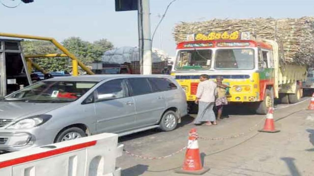 பள்ளிகொண்டா சுங்கச்சாவடியைக் கடக்கும்போது சுங்கச்சாவடி ஊழியர்கள் நுழைவுக் கட்டணத்தைக் கேட்டனர்.