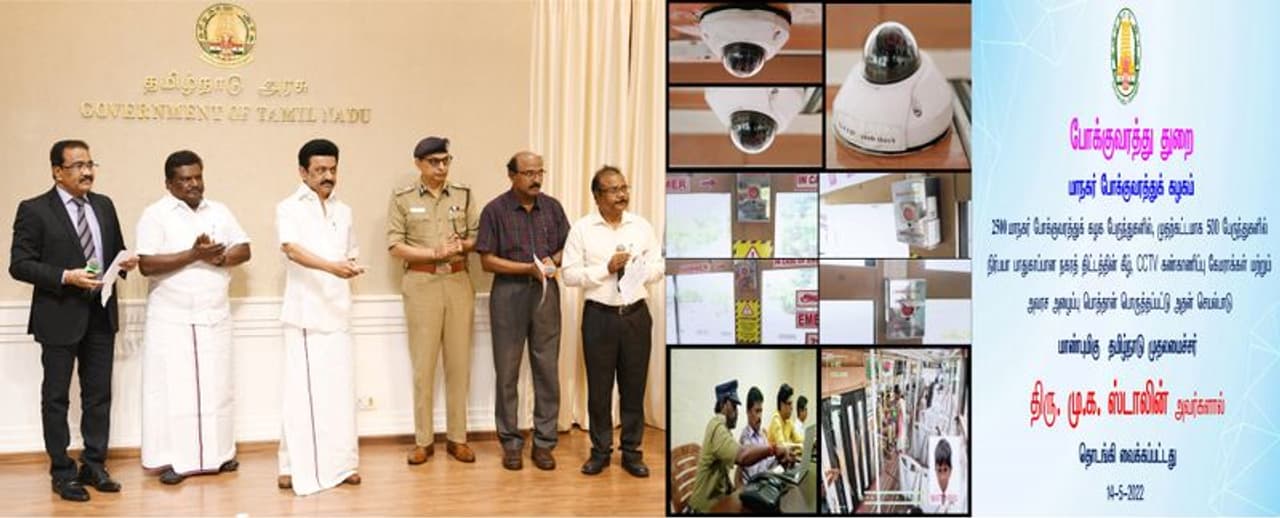இன்று தலைமைச் செயலகத்தில், போக்குவரத்துத் துறை சார்பில் பொது மக்களின் பாதுகாப்பான பயணத்திற்காக நிர்பயா பாதுகாப்பான நகரத் திட்டத்தின் கீழ், 2,500 மாநகர போக்குவரத்துக் கழக பேருந்துகளில் சிசிடிவி கேமராக்கள் மற்றும் அவசர பொத்தான்கள் பொருத்தும் பணியின் முதற்கட்டமாக 500 பேருந்துகளில் சிசிடிவி கேமராக்கள் மற்றும் அவசர அழைப்பு பொத்தான்கள் பொருத்தப்பட்டு அதன் முன்னோட்ட செயல்பாட்டினை முதலமைச்சர் மு.க.ஸ்டாலின் தொடங்கி வைத்தார்.