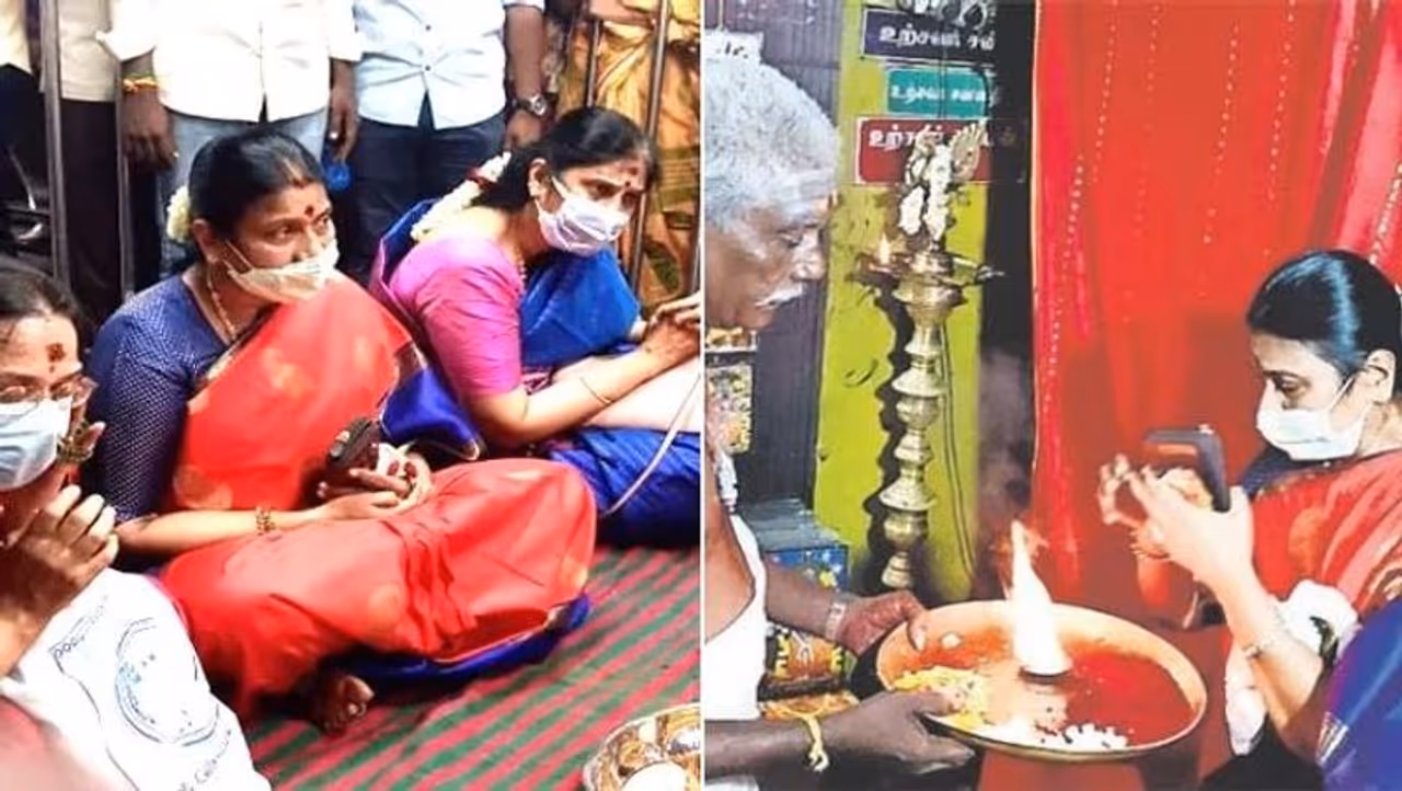 கடந்த ஆண்டு ஜூலை மாதம் தனது ஆன்மிக சுற்றுப் பயணத்தை ஆரம்பித்தார் துர்கா ஸ்டாலின். தனது கணவர் ஸ்டாலின் முதல்வர் ஆனதுக்கு நேர்த்திக்கடன் செலுத்த வரிசையாக கோவில்களில் தரிசனம் செய்து வருகிறார் என்று திமுகவினர் கூறி வருகிறார்கள். இந்நிலையில் விழுப்புரம் மாவட்டம் மேல்மலையனூர் அங்காளபரமேஸ்வரி அம்மன் கோவிலுக்கு நேற்று தமிழக முதல்வர் மு.க ஸ்டாலின் மனைவி துர்கா ஸ்டாலின் வருகை தந்தார்.