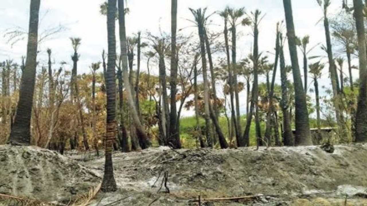 Coconut and palm trees broke out because of the spreading of fire in the plantation Fire broke out for 4 hours
