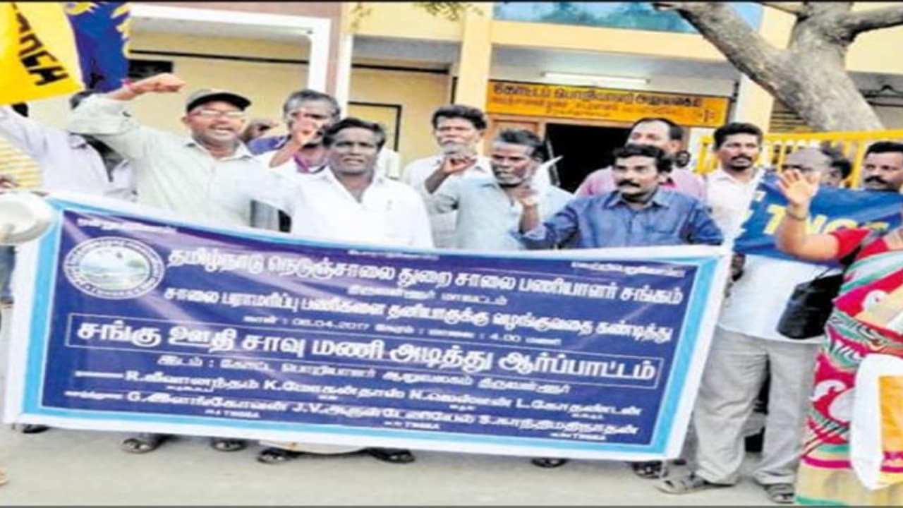 இந்த ஆர்ப்பாட்டத்திற்கு தமிழ்நாடு நெடுஞ்சாலைத்துறை சாலைப் பணியாளர் சங்கத்தின் திருவள்ளூர் மாவட்ட தலைவர் ஜீவானந்தன் தலைமை வகித்தார்.