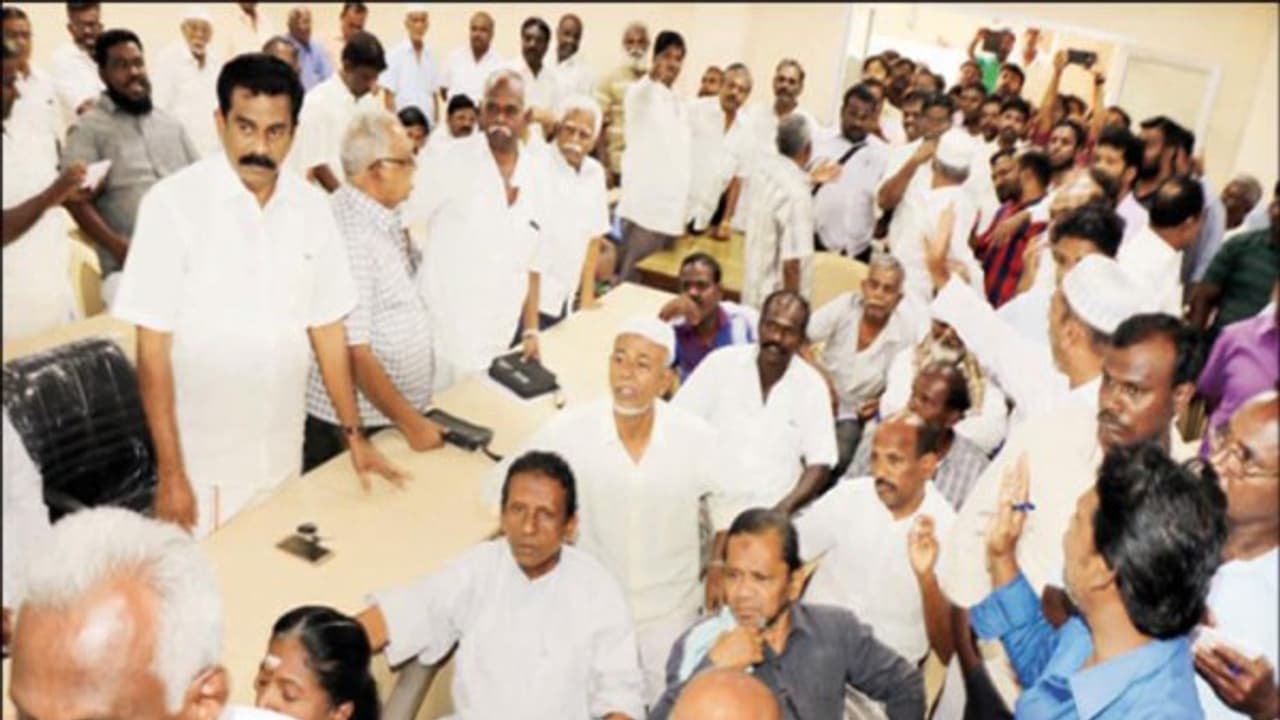 முதலில் தச்சநல்லூர் மண்டலம் கருத்து கேட்கப்படும். மற்ற மண்டலங்களை சேர்ந்தவர்கள் வெளியே உட்காருங்கள் என்று கூறினார். இதனால் கூட்டத்தில் கூச்சல், குழப்பம் நிலவியது. அங்கிருந்தவர்கள் அதிகாரிகளை முற்றுகையிட்டு கோஷங்கள் எழுப்பினர். இதனால் பரபரப்பு ஏற்பட்டது.