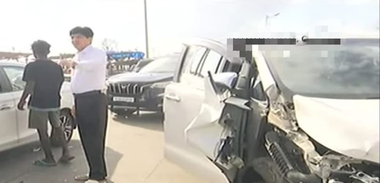 இந்த விபத்தில் அதிர்ஷ்டவசமாக எந்த வித காயங்களும் இன்றி தப்பிய கூட்டுறவு துறை செயலாளர் டாக்டர் ராதாகிருஷ்ணன், காரில் இருந்து இறங்கி சேதமான தனது காரை பார்வையிட்டார். மேலும் விபத்தை ஏற்படுத்திய சுற்றுலா வாகனத்தையும் தனது செல்போன் மூலம் புகைப்படம் எடுத்துக்கொண்டார். இந்தநிலையில் விபத்து காரணமாக அந்த பகுதி போக்குவரத்து நெரிசலால் பாதிக்கப்பட்டது. இதனையடுத்து தாமாகவே சாலையில் ஏற்பட்ட போக்குவரத்து நெரிசலை சரி செய்ததுடன் தொடர்ந்து சுனாமி தினத்தை ஒட்டி பட்டினப்பாக்கத்தில் கூட்டுறவுத்துறை செயலாளர் ராதகிருஷ்ணன் அஞ்சலி செலுத்தினார்.விபத்து நடந்த பகுதியில் இருந்து 200 மீட்டருக்குள் மெரினா காவல் நிலையம் இருந்தும் விபத்து குறித்தோ அல்லது போக்குவரத்து நெரிசலை சரி செய்யவோ எந்த ஒரு காவல்துறையினரும் இதுவரை வரவில்லை என்பது குறிப்பிடத்தக்கது.