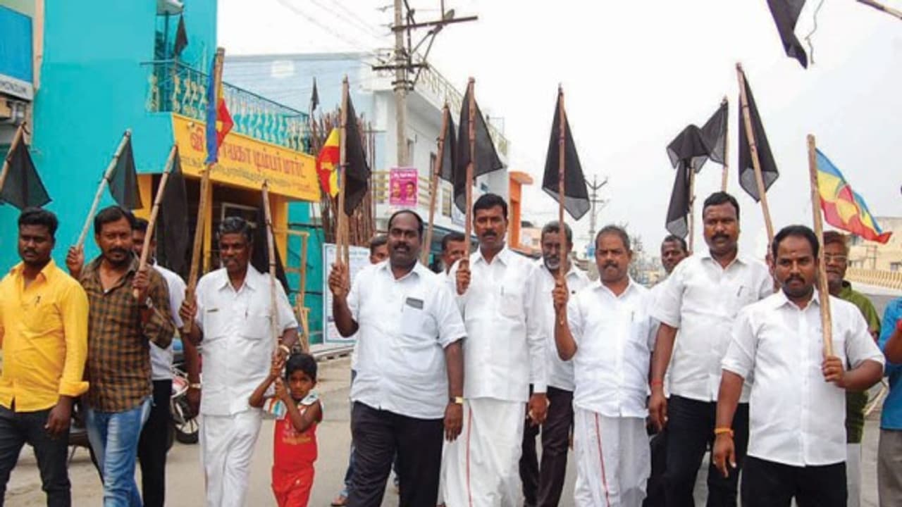 இதனைக் கண்டித்து தருமபுரி மாவட்ட பா.ம.க. சார்பில் மாவட்டத்தின் பல்வேறு பகுதிகளில் கருப்புக் கொடி ஏற்றும் போராட்டம் நடைபெற்றது.