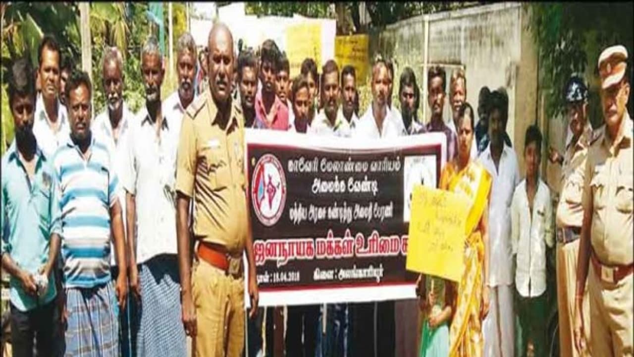 காவிரி மேலாண்மை வாரியம் அமைக்காத மத்திய அரசைக் கண்டித்து ஜனநாயக மக்கள் உரிமை கழகத்தினர் மௌன ஊர்வலம் சென்றனர்.