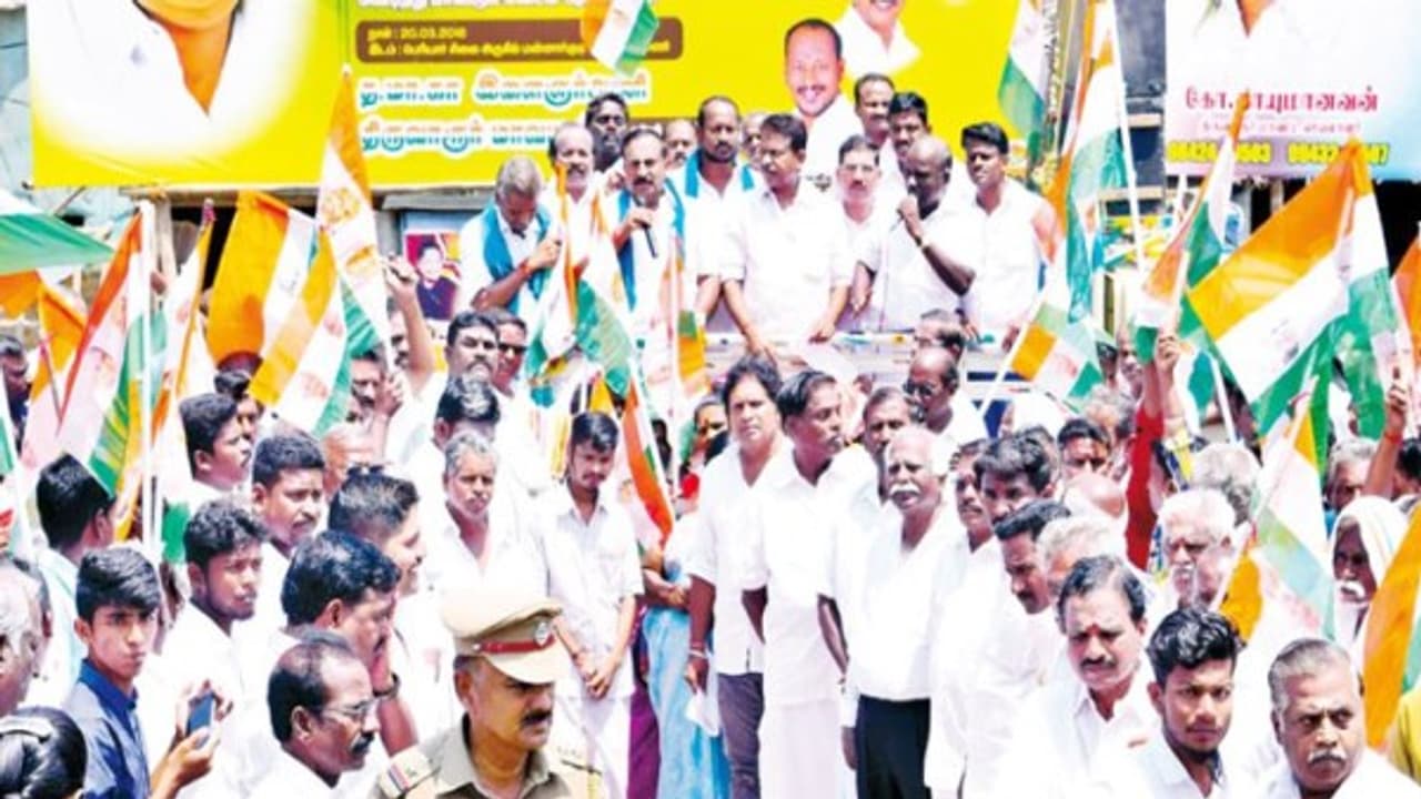 இந்த ஆர்ப்பாட்டத்துக்கு த.மா.கா. மாவட்ட தலைவர் குடவாசல் தினகரன் தலைமை தாங்கினார். இளைஞர் அணி தலைவர் சங்கர், மாநில பொதுக்குழு உறுப்பினர் சிங்குபாண்டியன் ஆகியோர் முன்னிலை வகித்தனர்.