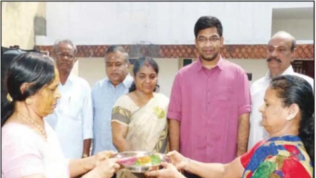 ஐ.ஏ.எஸ். தேர்வில் தமிழகத்தில் முதலிடம் பெற்ற தருமபுரி இளைஞன் கீர்த்திவாசனுக்கு அவரது குடும்பத்தை சேர்ந்த பெண்கள் ஆரத்தி எடுத்து வரவேற்பு அளித்தனர். இவரை காண அரசியல் கட்சியினர் அவரது வீட்டிற்கு சென்றிருந்தனர்.