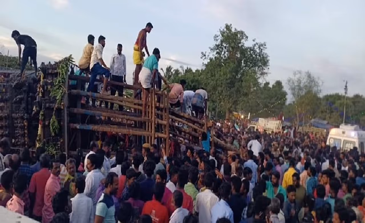 தருமபுரி மாவட்டம் பாப்பாரப்பட்டி அருகே மாதேஅள்ளி கிராமத்தில் கோயில் திருவிழாவில் தேர் சரிந்து விபத்திற்குள்ளானதில் 2 பேர் உயிரிழந்துள்ளனர்.