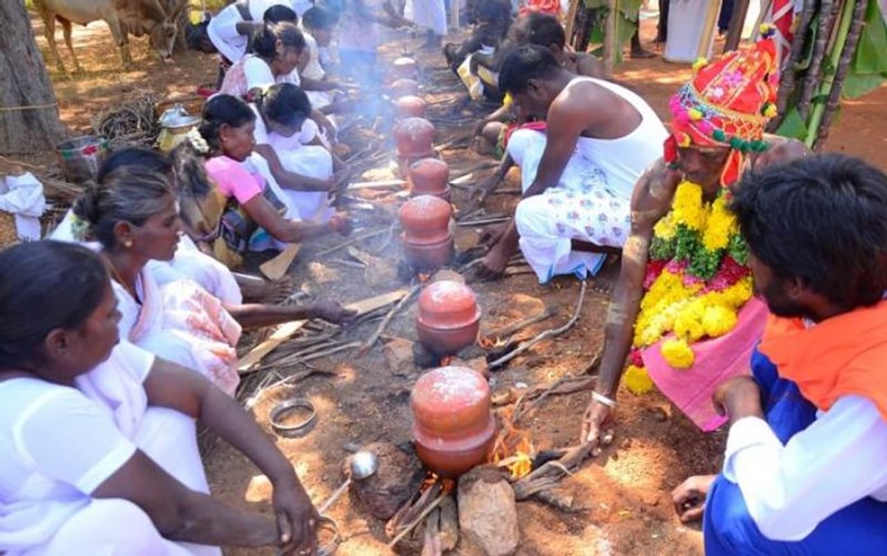 இந்நிலையில் சிவகங்கை அருகே பொங்கல் விழாவில் பெண்கள் வெள்ளை சேலை உடுத்தி பொங்கல் வைத்து விநோத வழிப்பாடு நடத்தியுள்ளனர்.சிவகங்கை அருகே மதகுபட்டி கீழத்தெரு, மேற்குத்தெரு, சலுகைபுரம் பகுதிகளில் அதிகளவில் ஒரு சமூகத்தினர் வசிக்கின்றனர். இவர்கள் தனித்தனியாக காவல் தெய்வங்களாக பிடாரி அம்மன், பொன்னழகி அம்மனை தரிசித்து வருகின்றனர். நேற்று மாட்டு பொங்கலையொட்டி, தனித்தனியாக பெண்கள் வளையல், மெட்டி, கொலுசு தவிர்த்து வெள்ளை சேலை உடுத்தி அம்மனுக்கு பொங்கல் வைத்தனர்.