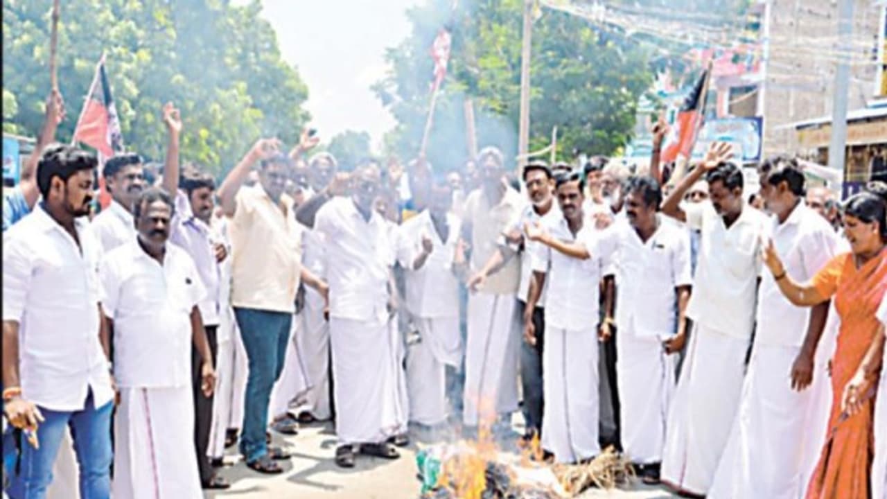 Dinakaran ephigy fired Removing the minister from the district secretary post