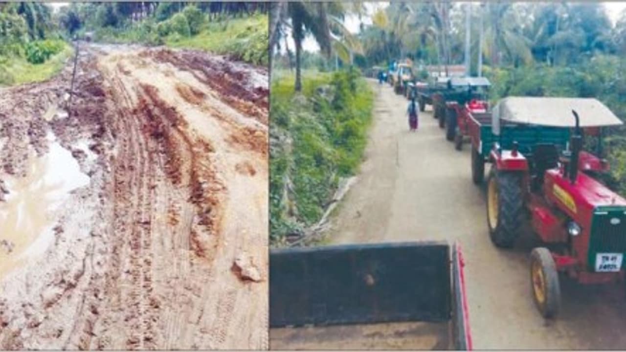 அப்போது, சேதமடைந்த சாலையில் உடனடியாக மண் கொட்டி சரி செய்ய பொதுப்பணித் துறையினர் ஏற்பாடு செய்தனர். இதனால் சமாதானம் அடைந்த மக்கள் டிராக்டர்களை விடுவித்தனர்.