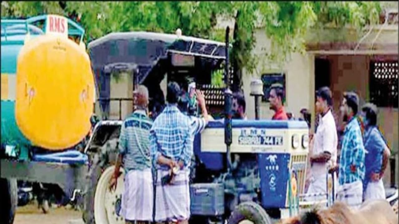 இராமநாதபுரத்தில் உள்ள அழகன்குளத்தில் தண்ணீர் எடுக்க வந்த டிராக்டர் மற்றும் லாரிகளை அப்பகுதி கிராம மக்கள் தடுத்து நிறுத்தி தண்ணீர் எடுக்க கூடாது என்று திருப்பி அனுப்பினர்.