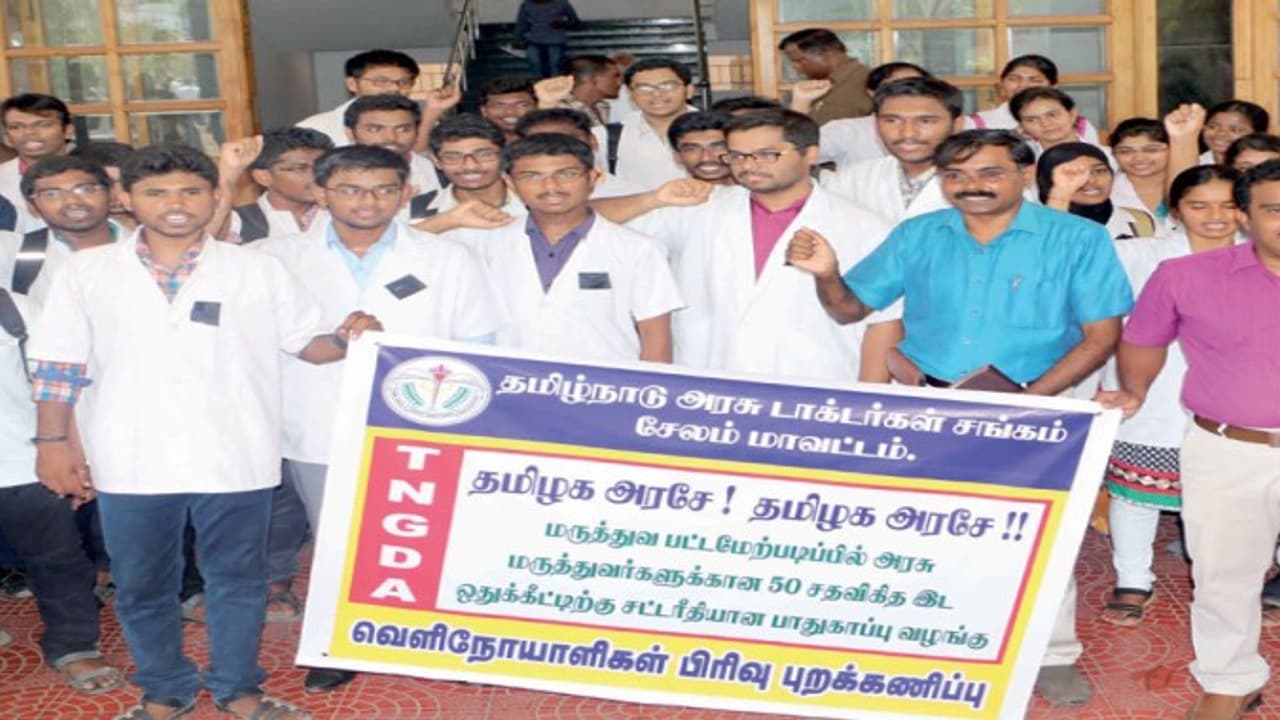 இதுபற்றி மருத்துவர் செந்தில்குமார் கூறியது, ‘மருத்துவ பட்ட மேற்படிப்புக்கு இட ஒதுக்கீடு கேட்டு தமிழகம் முழுவதும் மருத்துவர்கள் போராட்டத்தில் ஈடுபட்டனர்.