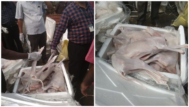 இதனால் சந்தேகமடைந்த ஊழியர்கள் உடனே போலீசாருக்கு தகவல் தெரிவித்தனர். அவர்கள் வந்து அந்த பெட்டிகளை திறந்து பார்த்தபோது இறைச்சிகள் தோல் உரிக்கப்பட்டு, பதப்படுத்தப்பட்டு இருந்தது. இது நாய் கறியாக இருக்கலாம் ஆகையால் இதனை கொடுங்கையூரில் மாநகராட்சி குப்பை கிடங்கிற்கு கொண்டு சென்று, அந்த கழிவுகள் அழிக்கப்பட்டன.