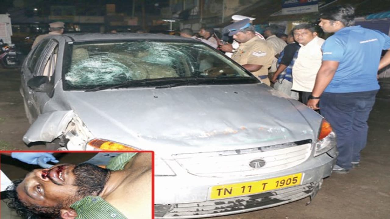 அந்த காரில் ஓட்டுநர் மட்டுமே இருந்தார். அவர் அளவுக்கு அதிகமாக குடி போதையில் இருந்தது தெரிந்தது. அவர் போதையில் காட்டுத் தனமாக காரை ஓட்டி விபத்து ஏற்படுத்தியதில் 10-க்கும் மேற்பட்டோர் காயம் அடைந்தனர். இதனால் சினம் கொண்ட பொதுமக்கள் காரில் இருந்த அவரை பிடித்து வெளுத்து வாங்கினர்.