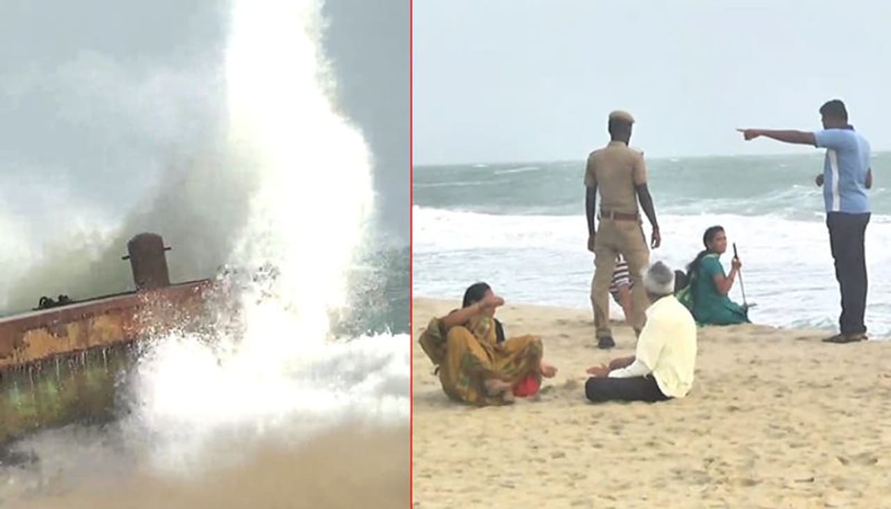 காசிமேடு மீன் பிடித்து துறைமுகத்திலிருந்து ஆழ்கடலுக்கு மீன் பிடிக்க செல்லக்கூடிய 2000க்கும் மேற்பட்ட விசைப்படகுகள் கடலுக்கு மீன் பிடிக்க செல்லாமல் கரையிலே கட்டி வைக்கப்பட்டுள்ள நிலையில் கடந்த ஒரு வாரத்துக்கு முன்பாக மீன் பிடிக்க சென்ற மீனவர்கள் ஆந்திரா துறைமுகத்தில் மற்றும் அருகில் உள்ள துறைமுகங்களில் தங்கள் படகுகளை பாதுகாப்பாக நிறுத்தி வைத்துள்ளதாகவும் மீனவர்கள் தெரிவிக்கின்றனர். இது போன்று ஆக்ரோஷமாக அலைகள் எழுவதை கடந்த வர்தா புயலின் போது பார்த்தோம், ஆனால் அதற்கு பின்பு தற்போது தான் கடல் அலை என்பது அதிக அளவில் அதிகரித்து காணப்படுவதாக தெரிவித்தனர். கடல் அலைகள் அதிகமாக இருப்பதால் கடல் முழுவதுமாக மறைக்கப்பட்டுள்ளதாக தெரிவித்தனர்.