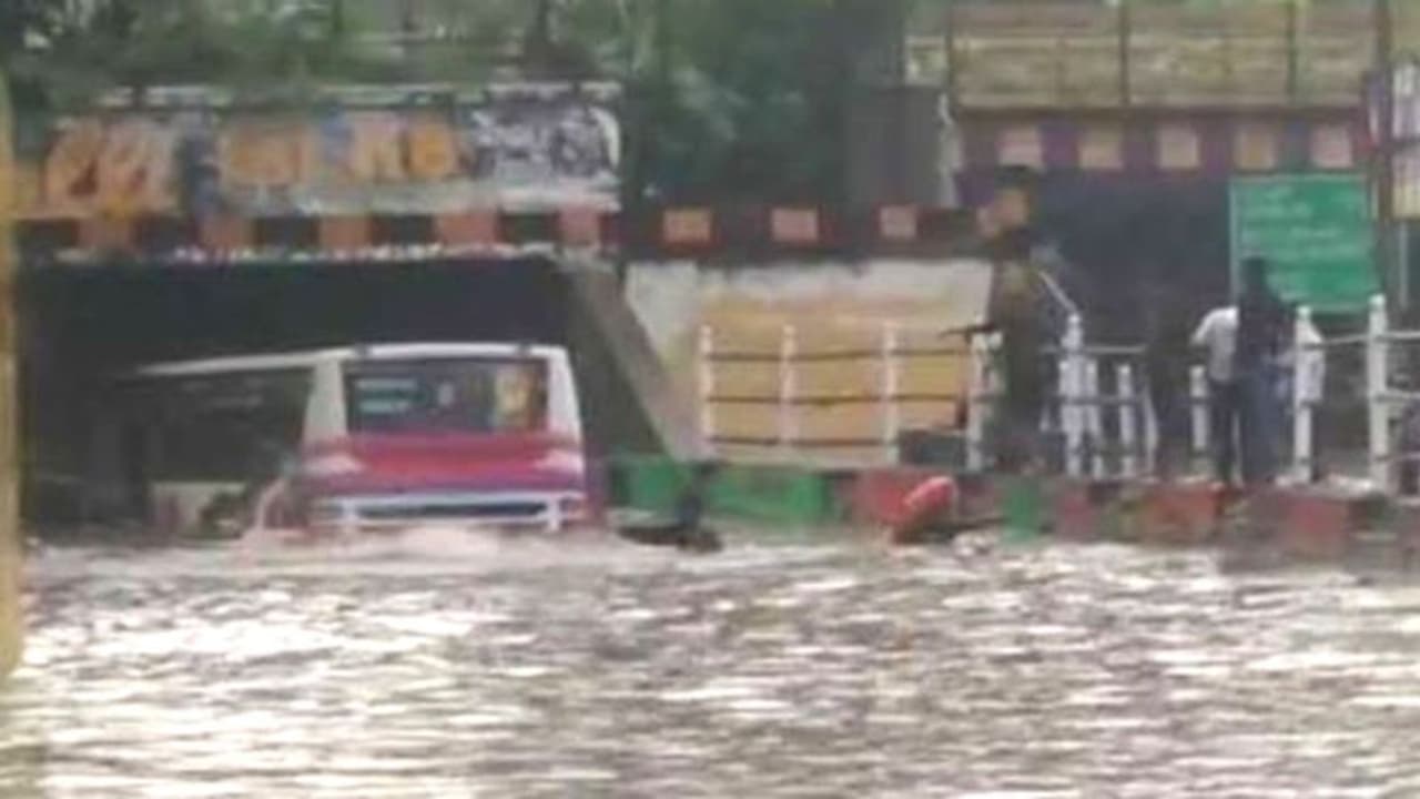 பஸ்சுக்குள் புகுந்த மழைநீரால், குழந்தை உட்பட 8 பேர் பஸ்சுக்குள் மாட்டிக்கொண்ட சம்பவம் அதிர்ச்சியை ஏற்படுத்தி இருக்கிறது.