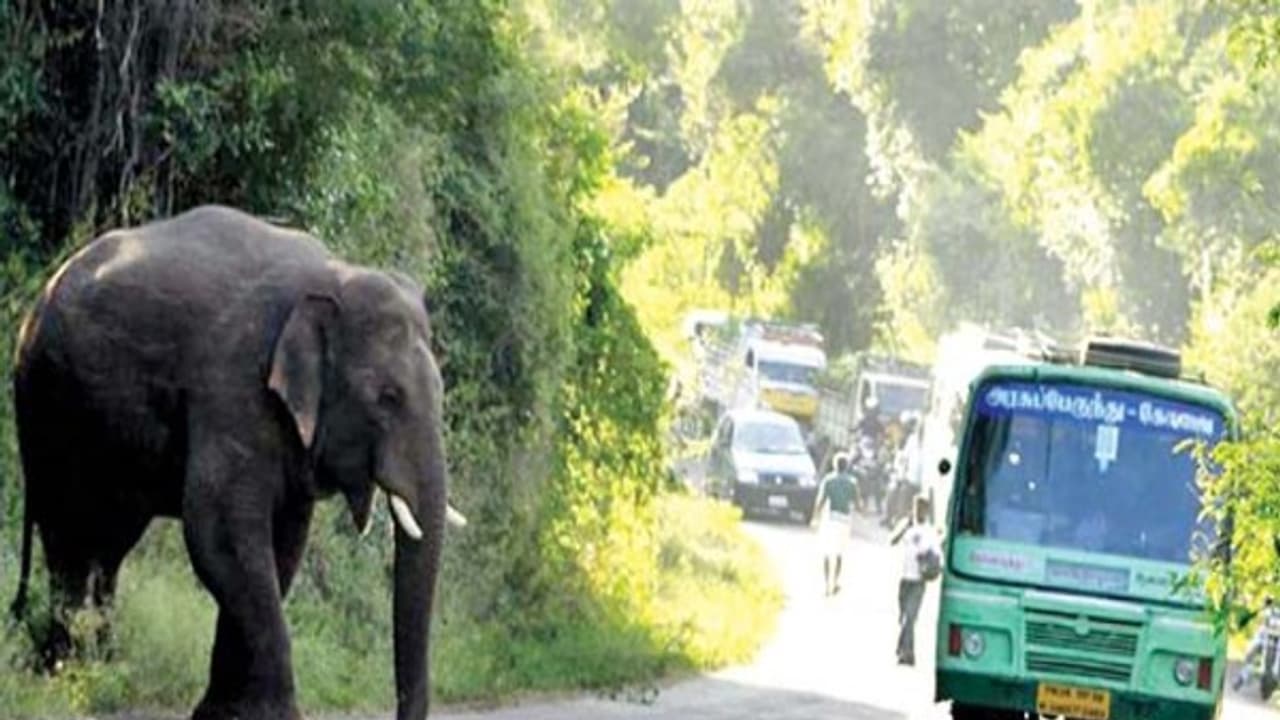 பின்னர், யானைகள் காட்டுக்குள் சென்றபிறகே பயணிகள் நிம்மதி அடைந்து, அரசு பேருந்து அங்கிருந்து புறப்பட்டது.
