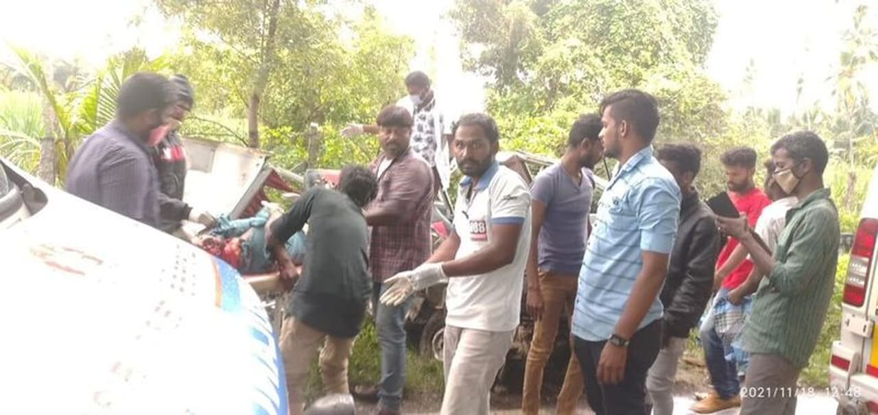 ஈரோடு மாவட்டம் மொடக்குறிச்சியை அடுத்த தானூத்துபாளையத்தை சேர்ந்தவர் தெய்வானை, இவரது மகள் மஞ்சு, தெய்வானையின் தங்கை அருக்காணி, மற்றுமொரு தங்கையான குப்பாயி மகள் தேன்மொழி, அவரது தம்பி குமரசேன்,மோகன்குமார் மற்றும் முத்து ஆகியோர் சாமி கும்பிட பழனிக்கு சென்றனர். இவர்கள் ஏழுபேரும் மொடக்குறிச்சியை சேர்ந்த ஒரு ஆம்னிவேனில் இன்று அதிகாலையில் பழனிக்கு சாமிகும்பிட சென்று விட்டு,இன்று பகல்12. 10 மணி அளவில் ஊர்திரும்பிக்கொண்டிருந்தனர். இவர்கள் வந்து கொண்டிருந்த அந்த வேனை படையப்பன் என்பவர் ஓட்டிவந்துள்ளார்.