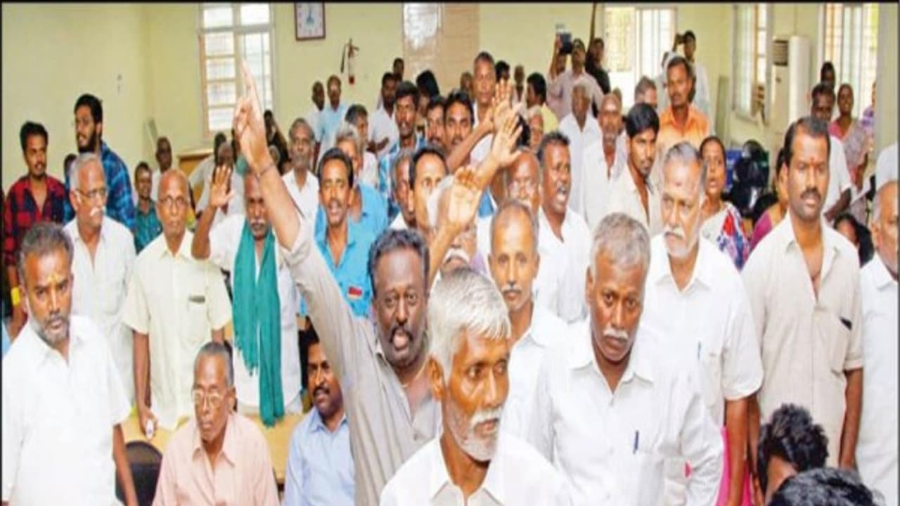 இதனை ஏற்க மறுத்தும், நான்கு வழி சாலை குறித்து விளக்க வருவாய் அதிகாரி முற்பட்டதாலும் கூட்டத்தில் சலசலப்பு ஏற்பட்டது. அதனைத் தொடர்ந்து விவசாயிகள் பலர் வெளிநடப்பு செய்தனர்.