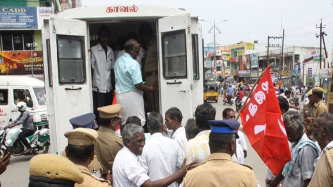 அப்போது அங்கு பாதுகாப்புக்காக நின்ற காவலாளர்கள் அவர்களை தடையை மீறி மறியல் போராட்டம் செய்ததாக விவசாயிகள் சங்க மாவட்ட செயலாளர் மாதவன், பொருளாளர் தட்சிணாமூர்த்தி, இணை செயலாளர்கள் சரவணன், ஜெகதீசன், ஒன்றிய தலைவர் பஞ்சாட்சரம், பொருளாளர் கடவுள், ஈ.ஐ.டி. கரும்பு விவசாயிகள் சங்க செயலாளர் தென்னரசு, தலைவர் மணி உள்பட 30 பேரை காவலாளர்கள் கைது செய்தனர்.