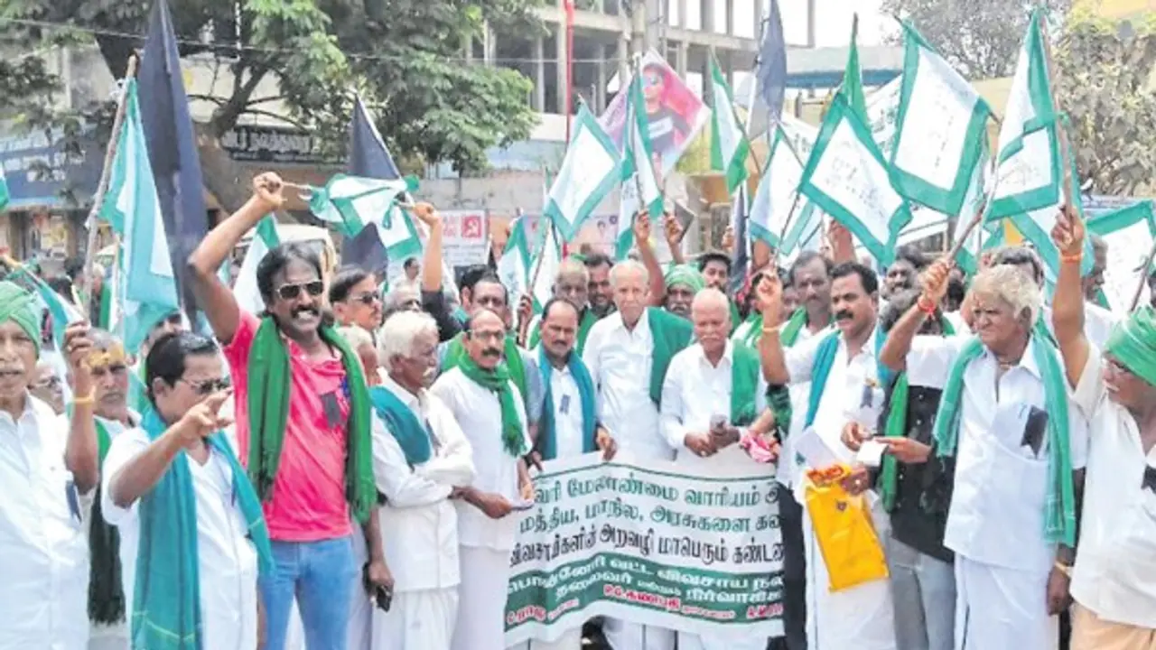 பல்வேறு கோரிக்கைகளை வலியுறுத்தியும் மத்திய அரசை கண்டித்தும் விவசாயிகள் சங்கத்தினர் கண்டன ஊர்வலத்தில் ஈடுபட்டனர்.