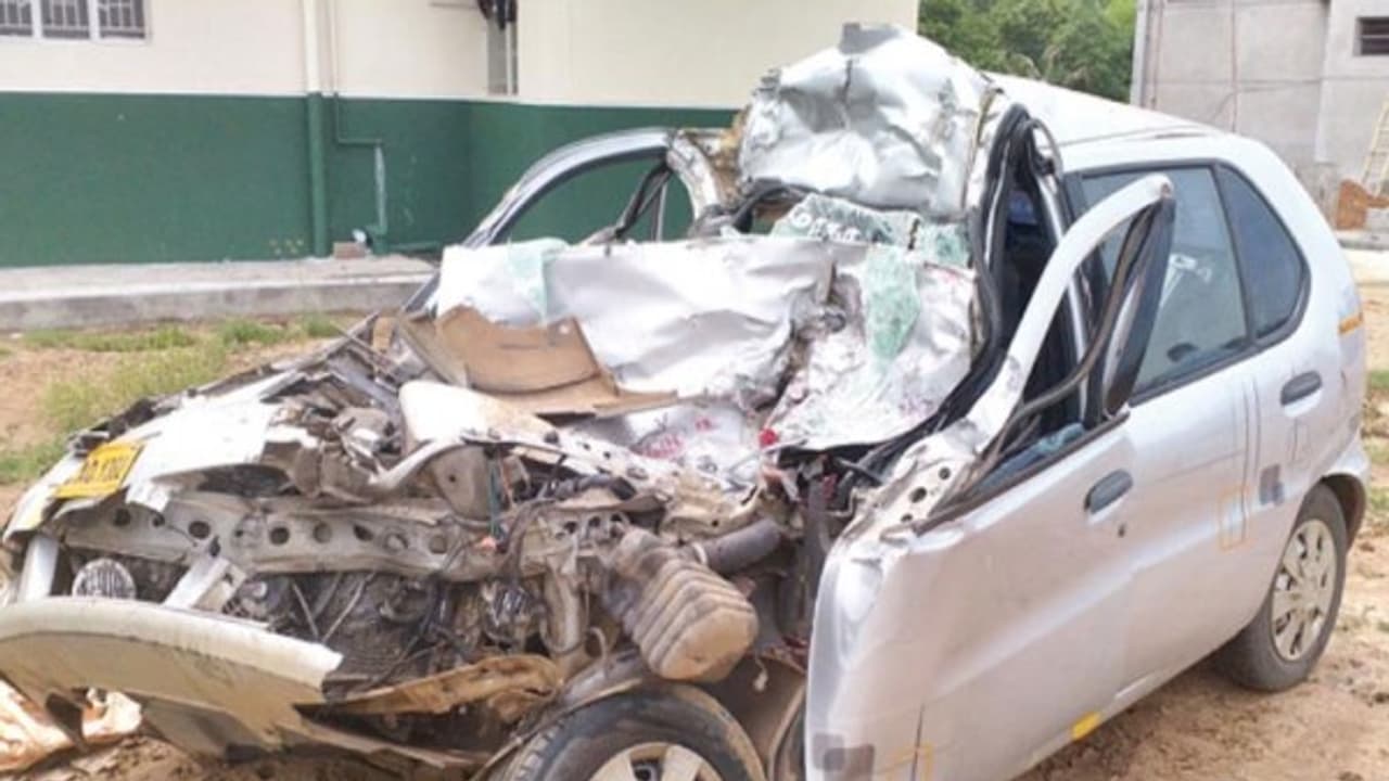 காரை தஞ்சாவூரைச் சேர்ந்த ராஜேந்திரன் மகன் அரவிந்தன் (21) என்பவர் ஓட்டினார். நேற்று அதிகாலை இவர்கள் சென்ற கார், திருச்சி - சென்னை தேசிய நெடுஞ்சாலையில் சென்று கொண்டிருந்தது.