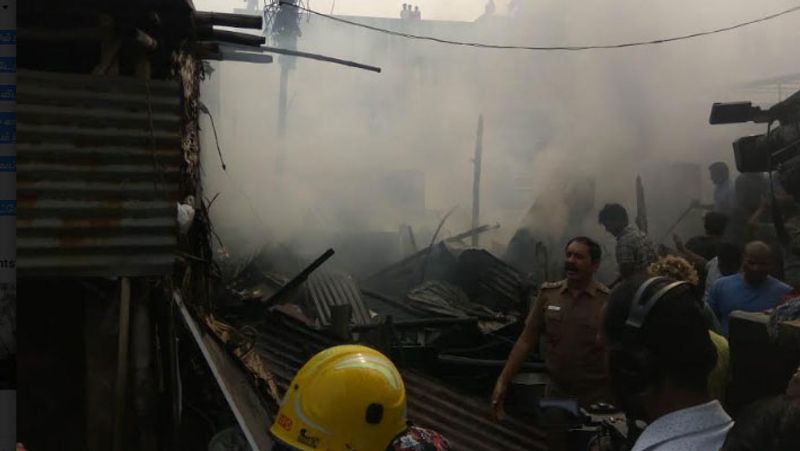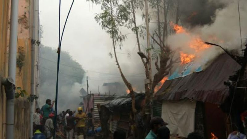 இதை பார்த்ததும், குடிசை வீடுகளில் இருந்த பொதுமக்கள் வெளியே அலறியடித்து கொண்டு ஓடினர். தண்ணீர் ஊற்றி தீயை அணைக்க முயன்றும் முடியவில்லை. அனைத்து குடிசைகளுக்கும் தீ வேகமாக பரவியது.