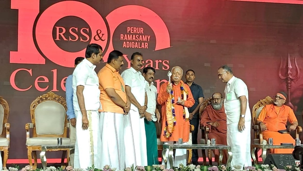 முன்னதாக ஆர்.எஸ்.எஸ். தலைவர் மோகன் பகவத்துக்கு வெள்ளிமுருகன் சிலையை அதிமுக முன்னாள் அமைச்சர் எஸ்.பி.வேலுமணி முருகன் சிலை வழங்கி வரவேற்றார். இந்த நிலையில் ஆர்எஸ்எஸ் பேரணியில் கலந்து கொண்டதற்காக தளவாய் சுந்தரம் கட்சியில் இருந்து நீக்கப்பட்ட நிலையில் தற்போது ஆர்எஸ்எஸ் தலைவர் பங்கேற்க விழாவில் அதிமுக மூத்த நிர்வாகி எஸ்.பி. வேலுமணி பங்கேற்றுள்ளார். எனவே எஸ்.பி.வேலுமணியை கட்சியில் இருந்து நீக்கப்படுவாரா என அரசியல் விமர்சகர்கள் கேள்வி எழுப்பி வருகிறார்கள்.