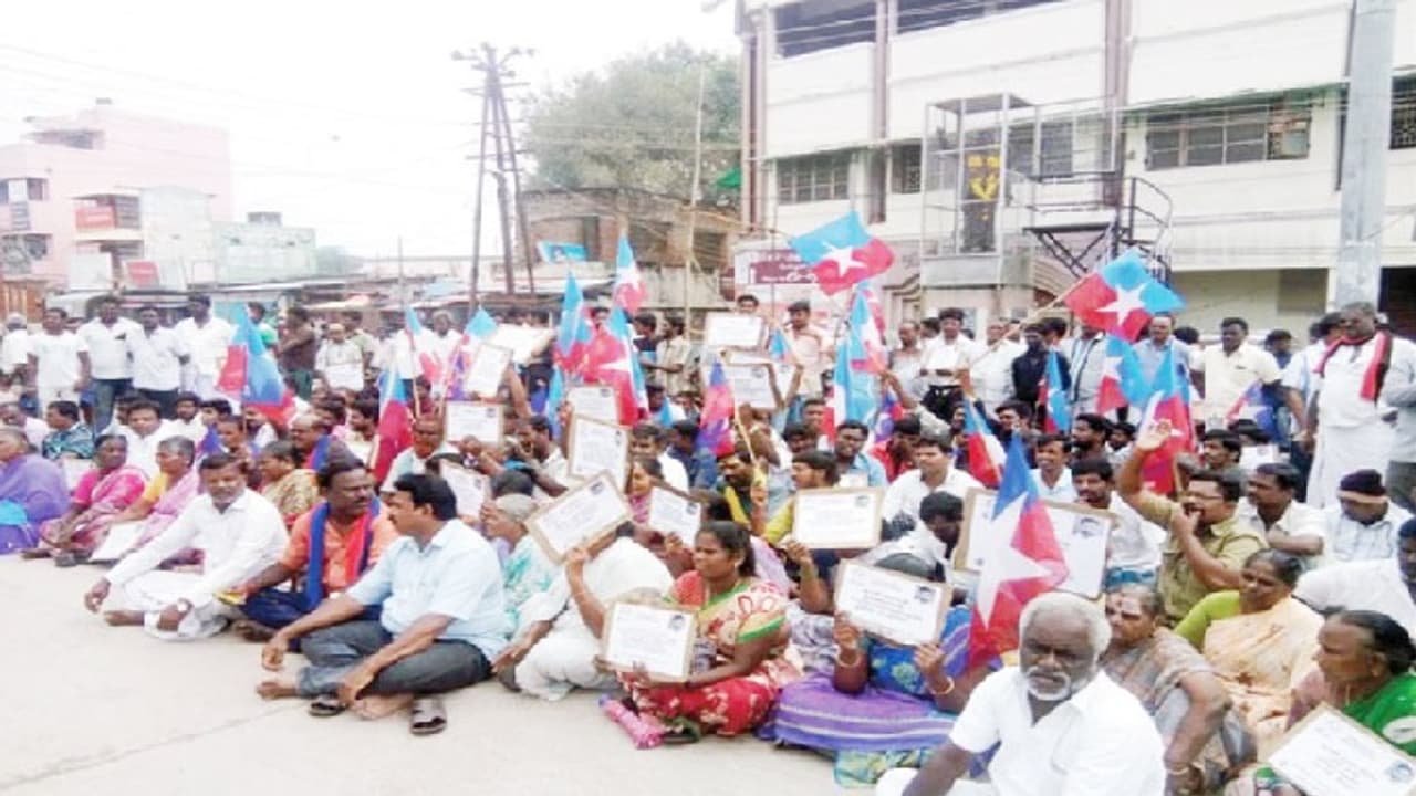 காவலாளர்களின் இந்த கொடுஞ்செயலைக் கண்டித்து 50-க்கும் மேற்பட்ட பழ வியாபாரிகள் மார்க்கெட் சாலையில் திரண்டு சாலை மறியலில் ஈடுபட்டனர். இதனால் அங்கு போக்குவரத்து பாதிப்பு ஏற்பட்டது. போக்குவரத்துக்கு இடையூறாக இருக்கும் ஆக்கிரமிப்பை அகற்ற வந்த காவலாளார்களின் அத்துமீறலால் போராட்டம் ஏற்பட்டு மீண்டும் போக்குவரத்து பாதிக்கப்பட்டது.