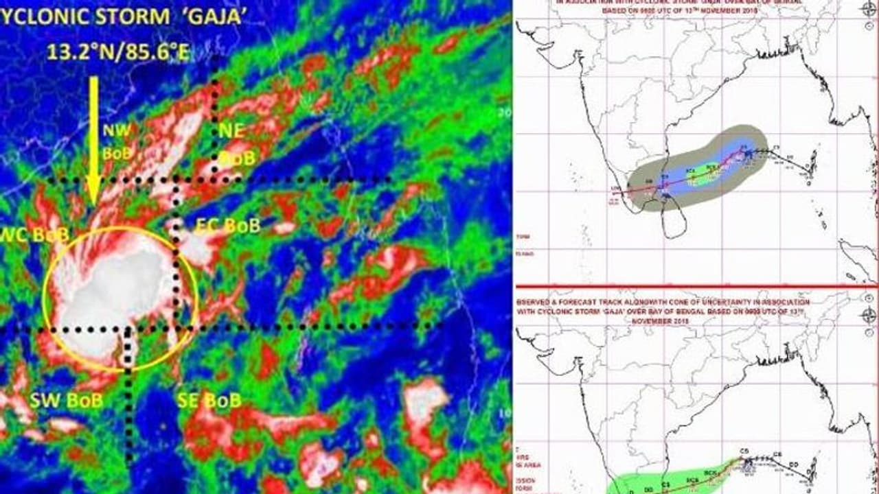 கஜா புயல் சென்னைக்கு கிழக்கே 520 கி.மீ. மற்றும் நாகைக்கு வடகிழக்கே 620 கி.மீ. தொலைவில் இன்று காலை மையம் கொண்டு இருந்தது. நாளை மாலை கடலூருக்கும், பாம்பனுக்கும் இடையே புயல் கரையை கடக்கும் என்றும், கஜா புயல் மணிக்கு 7 கி.மீ. வேகத்தில் நகர்ந்தது, அதன் வேகம், தற்போது 10 கிலோ மீட்டராக அதிகரித்துள்ளது.