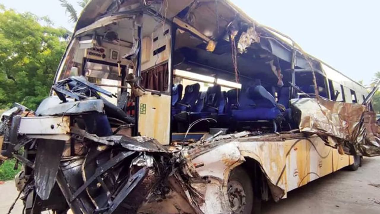 திருவாரூர் மாவட்டம் திருத்துறைப்பூண்டியில் இருந்து 25க்கும் மேற்பட்ட பயணிகளுடன் சென்னை நோக்கி அரசு சொகுசு பேருந்து ஒன்று சென்றுக்கொண்டிருந்தது. பேருந்து சீர்காழி புறவழிச் சாலை பாதரக்குடி என்ற இடத்தில் சென்ற போது இருசக்கர வாகனத்தின் மீது மோதாமல் இருக்க அரசு சொகுசு பேருந்தை ஓட்டுநர் சாலையின் இடது புறமாக திருப்ப முயன்றார்.