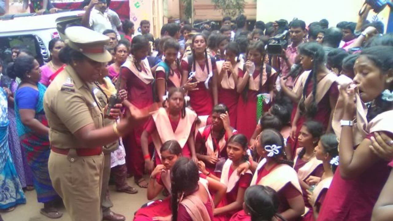 இதைதொடர்ந்து சில மணி நேரத்துக்கு பிறகு சாலை மறியல் போராட்டம் கைவிடப்பட்டது. ஆனால் மாணவிகளை பள்ளியில் இருந்து நீக்கி விட்டதாகவும், டிசி கொடுக்க உள்ளதாகவும் பள்ளி நிர்வாகம் தெரிவிப்பதாக கூறி மாணவிகள் மீண்டும் பள்ளியின் முன்பு போராட்டத்தில் ஈடுபட்டுள்ளனர்.