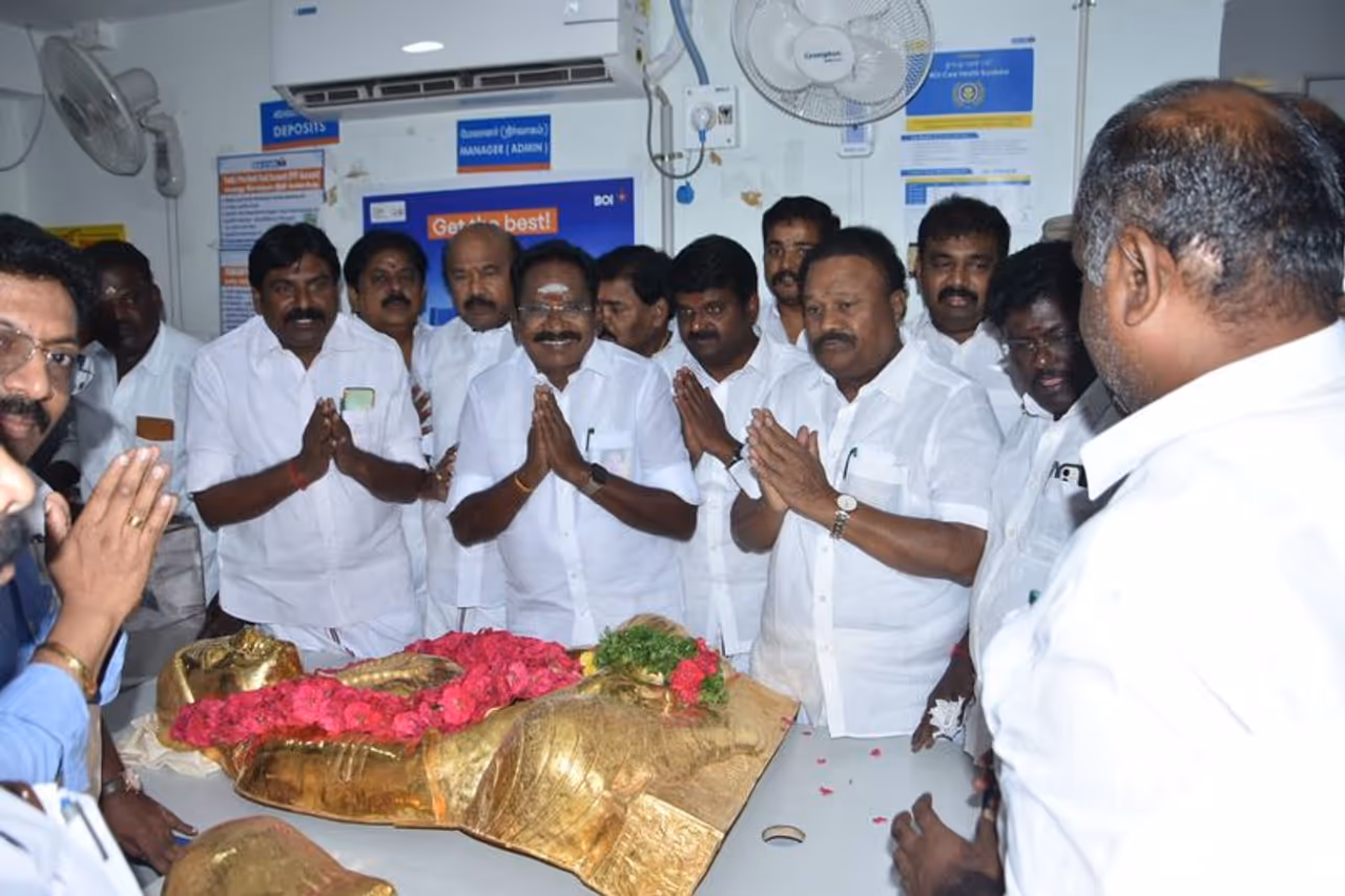 ராமநாதபுரம் மாவட்டம் பசும்பொன்னில் வாழ்ந்து மறைந்த பசும்பொன் முத்துராமலிங்க தேவரின் குருபூஜை மற்றும் ஜெயந்தி விழா ஆண்டு தோறும் நடைபெறும். இதனையொட்டி கடந்த 2014 ஆம் ஆண்டு மறைந்த முதலமைச்சர் ஜெயலலிதா 13 கிலோ எடை கொண்ட தங்க கவசம் வழங்கினார். குரு பூஜை முடிவடைந்ததும் பாதுகாப்பாக இருக்கக்கூடிய வகையில், மதுரை அண்ணாநகர் பகுதியில் பேங்க் ஆஃப் இந்தியாவில் வைக்கப்படும். ஒல்வொரு ஆண்டும் அதிமுக சார்பாக அந்த கட்சியின் பொருளாளராக இருக்கக்கூடியவர்கள் தங்க கவசத்தை எடுத்து பசும்பொன் தேவர் நிர்வாகத்திடம் ஒப்படைப்பார்கள். கடந்த இரண்டு ஆண்டுகளாக அதிமுகவில் ஏற்பட்ட மோதல் காரணமாக நீதிமன்ற உத்தரவின் படி தங்க கவசம் வங்கி நிர்வாகம் சார்பாக நேரிடையாக பசும்பொன் நிர்வாகத்திடம் ஒப்படைக்கப்பட்டது.
