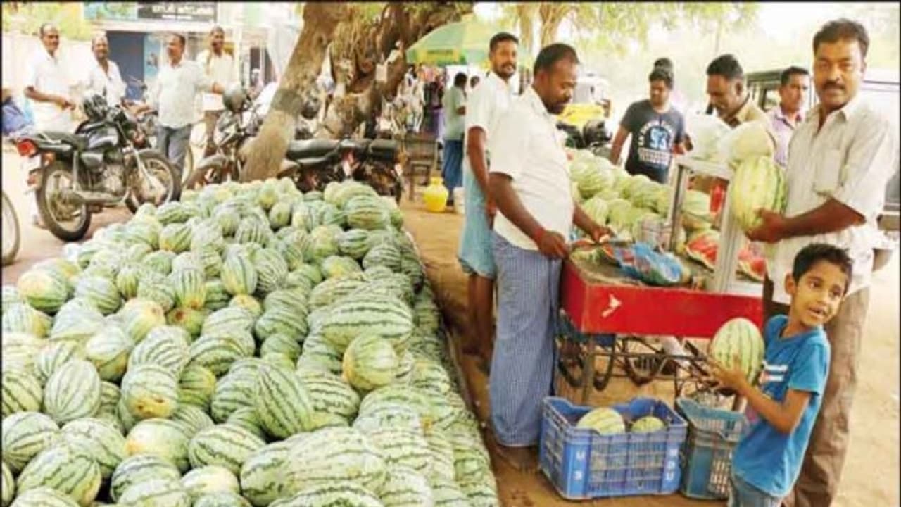 வெயிலின் தாக்கத்தில் இருந்து தப்பவும், தாகத்தை தணிக்கவும் மக்கள் குளிர்ச்சி தரும் பழங்கள், குளிர்பானங்கள் என தேடி ஓடுகின்றனர். இதனால், தர்பூசணி விலை உயர்ந்துள்ளது.