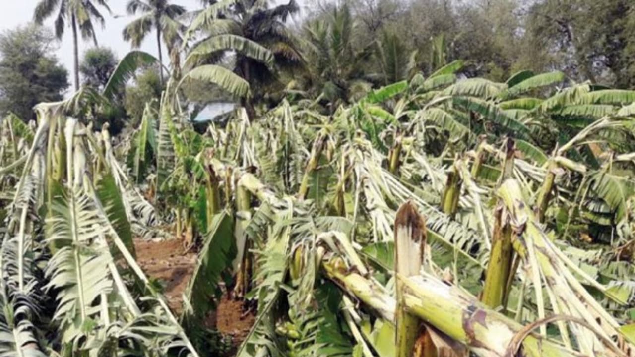 இந்தப் பகுதியில் சுமார் 30 ஏக்கருக்கும் மேற்பட்ட வாழை, பப்பாளி மரங்கள் சேதமடைந்து இருக்கும் என்று கணிக்கப்படுகிறது. மேலும், வீட்டின் மேற்கூரைகளும், கோழி பண்ணையில் இருந்த கூரைகளும் காற்றில் அடித்து செல்லப்பட்டன.