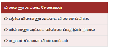 ·விண்ணப்பத்தின்நிலையைஅறியவும்:விண்ணப்பஎண்மற்றும்மொபைல்எண்ணைப்பயன்படுத்தி, உங்கள்விண்ணப்பத்தின்நிலையைஅவ்வப்போதுஇணையதளத்தில்சரிபார்க்கலாம்.