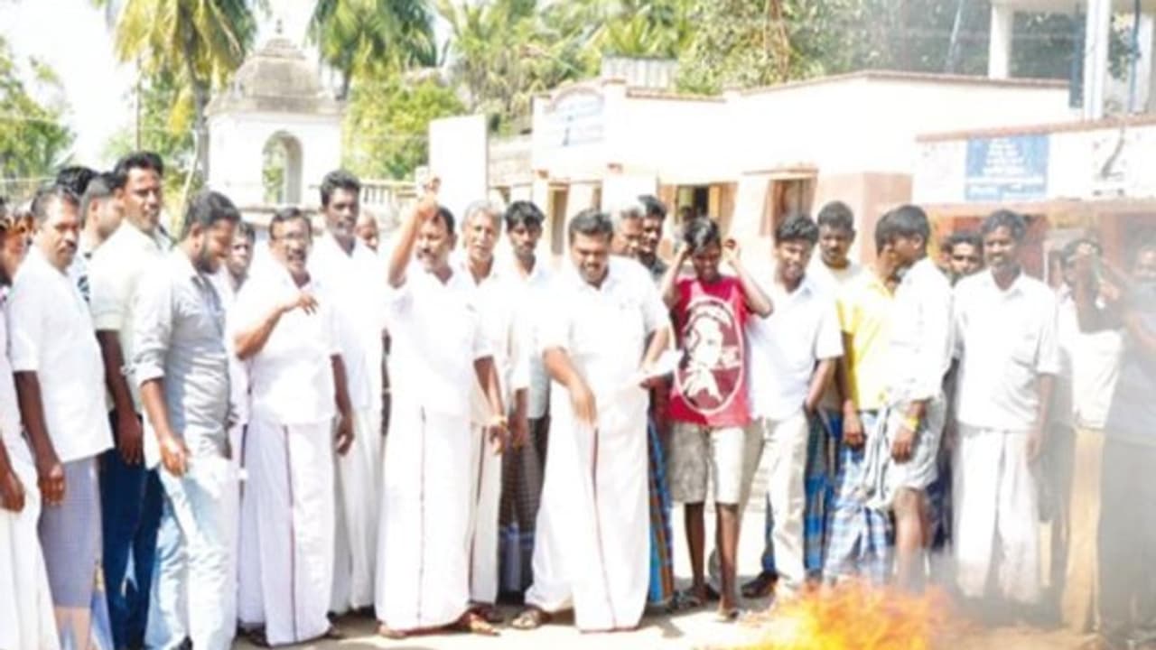 H.Raja effiigy burned - protest in various places in Thiruvarur ...