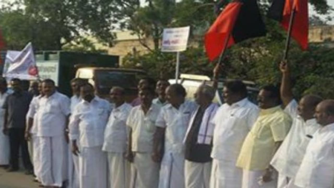 பாரிமுனை உள்ளிட்ட சென்னையின் பல பகுதிகளில் மனித சங்கிலி போராட்டத்தை திமுவினர் நடத்தி வருகின்றனர். இந்த போராட்டத்தில் ஏராளமானோர் கலந்து கொண்டுள்ளனர்.