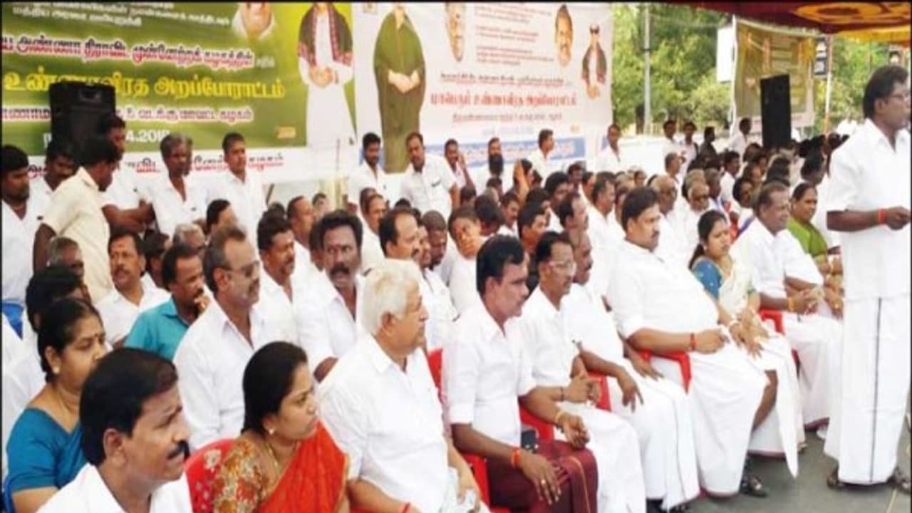 hunger strike in Thiruvannamalai by admk demanding formation of Cauvery Management Board