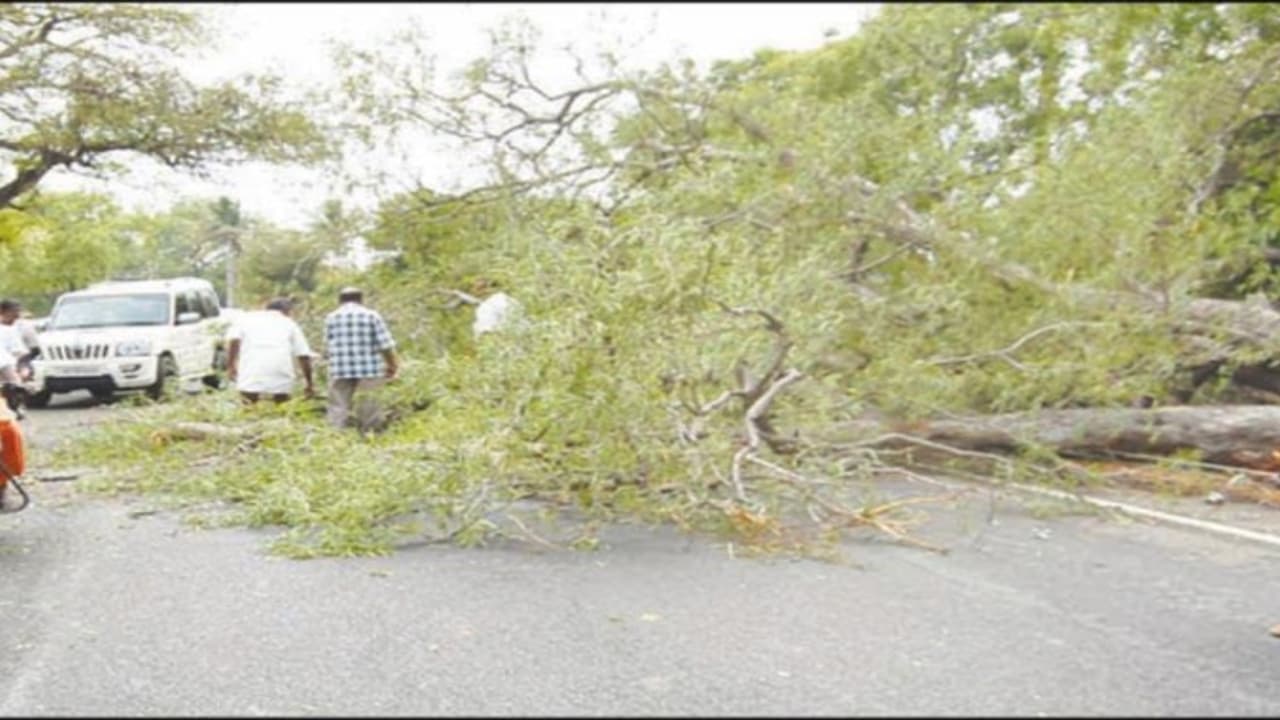 இதனைத் தொடர்ந்து அவர்களே வாகனங்களில் இருந்து இறங்கி மரங்களை சாலையில் இருந்து அப்புறப்படுத்திவிட்டு அங்கிருந்து புறப்பட்டனர். இதனால், அந்தப் பகுதியில் சுமார் ஒரு மணி நேரத்திற்கும் மேலாக போக்குவரத்து பாதிக்கப்பட்டது.