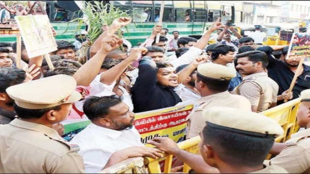 டெல்லியில் போராடும் தமிழக விவசாயிகளுக்கு ஆதரவாகவும், விவசாயிகளின் கோரிக்கைகளை நிறைவேற்றாத மத்திய அரசை கண்டித்தும், பல்வேறு முழக்கங்களை அவர்கள் எழுப்பினர்.